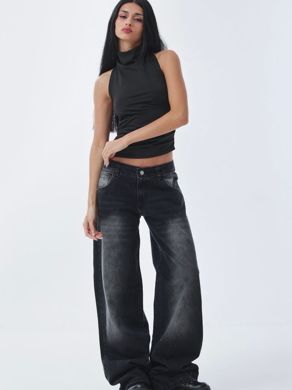 JEAN BAGGY TIRO BAJO NEGRO GASTADO